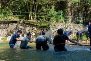 信任之椅”团团坐: 深水区人椅环坐,绝对信赖共支撑,无声稳坐中激荡团魂!每一次成功的坐稳,都是对队友力量的信赖与承诺。