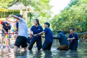 紧接着,分队环节小组成员通过起队名、喊口号、拉进团队距离,提升团队归属感,全体员工化身探险小队,手持任务地图组队出征,目标直指遍布峡谷清凉秘境中象征胜利的趣味任务点!