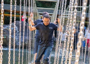 摇摆桥上定乾坤:这是平衡力与团队默契的终极试炼!队员紧抓臂膀,重心下沉,对抗摇晃,这里需要强大团队支持!规则即战场:限时对抗,唯剩者胜!比的就是哪队能携手坚持到最后!