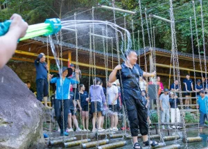 溪水中协作捞鱼的身影、魔性海草舞的欢笑、平板支撑的呐喊鼓劲、邀请游客合影的击掌相庆——每一幕都是“峡谷同舟济,携手固恒行”的生动写照!各组群策群力,紧密配合,在欢笑声中共寻“龙珠”、解锁任务!每一次成功,都是宝贵积分的入账!不仅记录着团队的智慧和汗水,更是最终团队总排名的决定性因素!激烈的积分争夺,让每支小队全力以赴,斗志燃爆!